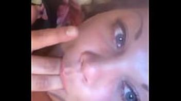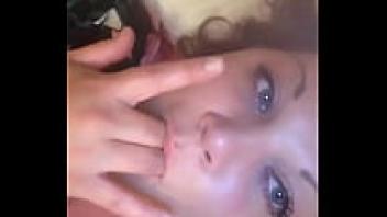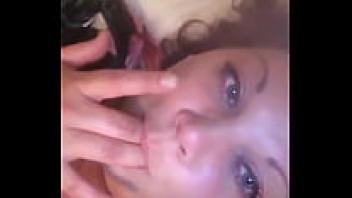 Fingering her lovely pussy on the chair, a Latina BBW teen