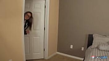 A young, attractive woman with glasses attempts having sex with her stepfather.
