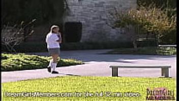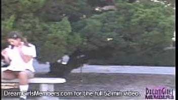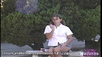 Teenage girl rubbing her pussy with her voyeur
