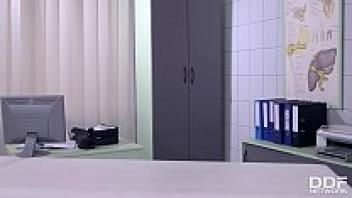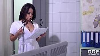 The Latin Big Titty Nurse is shaved and her pussy is dripped.