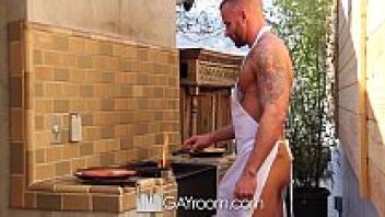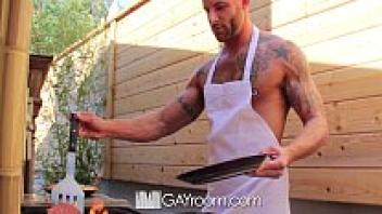 HD GayRoom: After a BBQ, a muscular man adores his pal