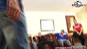 A HOMEMADE GANGBANG with natural tits and a British blonde