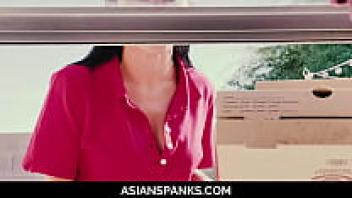 Jerking Guys Steal Pizza from a Delivery Teen (Ember Snow) [UNCENSORED]