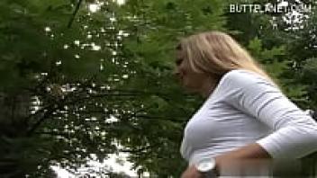 In public, a chubby or mature woman is seen drilling her wet cunt on the hard bone of her husband.