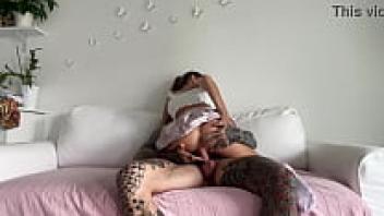 When she was at home by herself, the horny pregnant maid couldn't help but start flaunting her hairy pussy and big boobs on video.