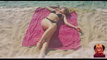 Teens wearing hot blonde bikinis on the beach showing pussy (with an ASMR sound of pussy masturbating to accompany it!)