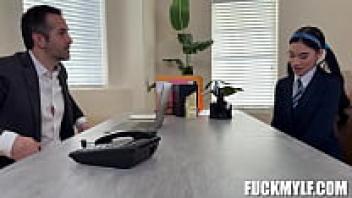 Her stepson ejaculates her three times in her ass because she is hot due to a lack of a dick.