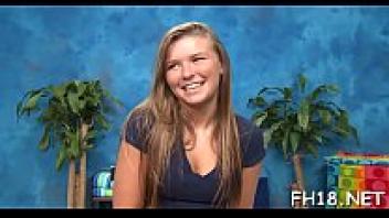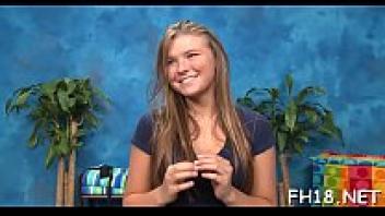 Teenage girl gets sideways and doggie fashion in nature's attire.