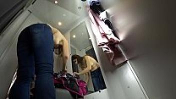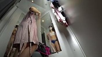 peeking into the public dressing room, a concealed camera, and a view of a lovely female with long legs and a delicious ass from below.