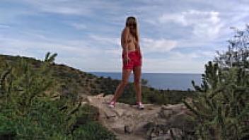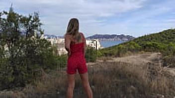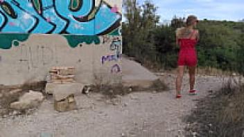 In an abandoned building, a horny MILF with tiny tits and flawless ass-loving poses. OUTDOOR LOVE IN REAL POV (full video - RED)