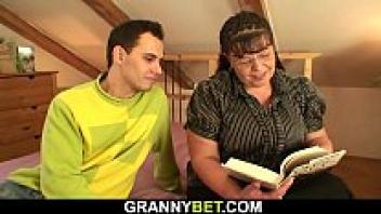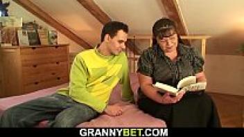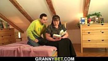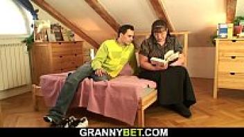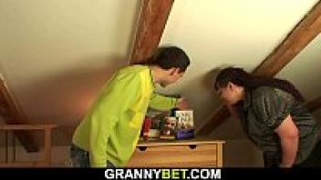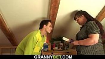 After tasting her young neighbor's big dick, Lusty Grandma's hot GILF