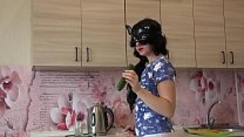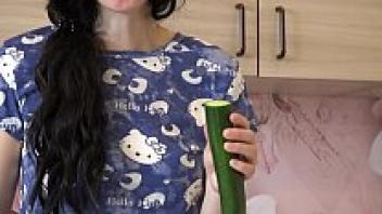 After the girl ate a small amount of cucumber, the cucumber had a great climax with an enticing pussy.