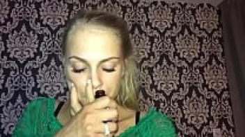 Mobile Porn: A naughty nurse fingering both holes while wearing fishnets
