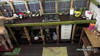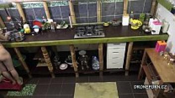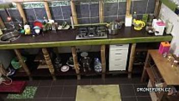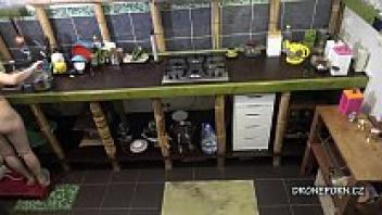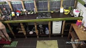While serving customers, a pretty brunette adolescent wore an upskirt to work.
