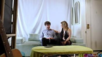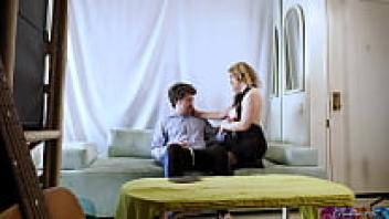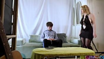 When a stepmother is found masturbating in the living room, her stepson assists her.