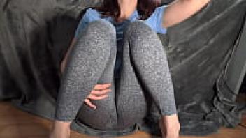 After rubbing his cock, the yoga babe makes him cum in her bike shorts and underwear.
