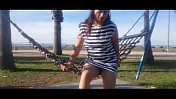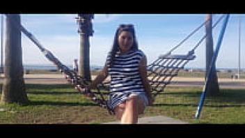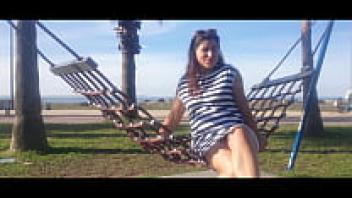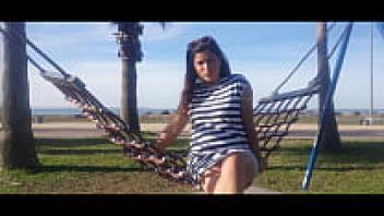 Naked, big-boobs cam girl on a public beach Augirls.live