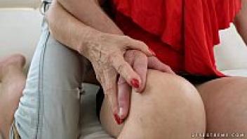 German vintage 81-year-old grandmother's affection from a young stepgrandson