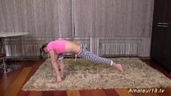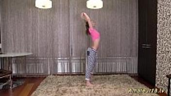 Big tits and skinny! The flexibility of the perfect physique gymnast is amazing!