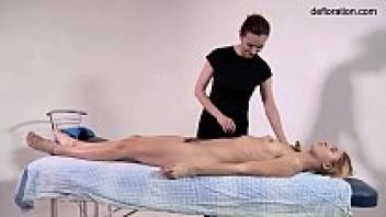 Elena Seregyna, a Russian blonde beauty, gets her first body rub.