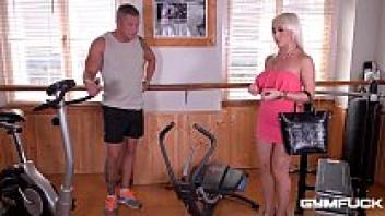 Christina Shine blows the dude's massive, hard cock with gym love XXX action.