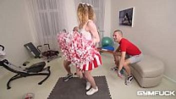 Angel, the cheerleader, and gym love Two dicks leave Emily's ass in ruins.