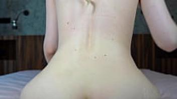 With her flawless large ass, the sexiest step-sister is winking with her anal hole and fingering asshole.