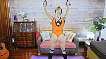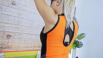 Big Boobed Blonde and Big Ass Working Out in Spandex