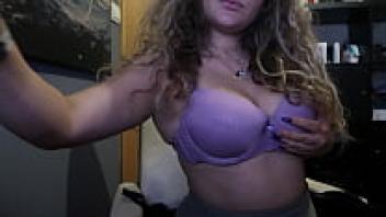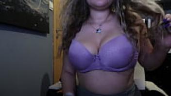 A gorgeous woman with natural breasts wearing a cute bra for you