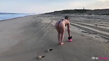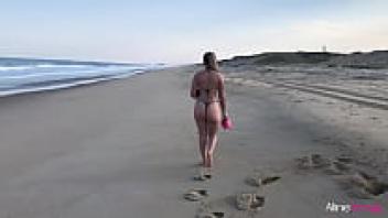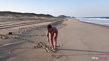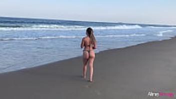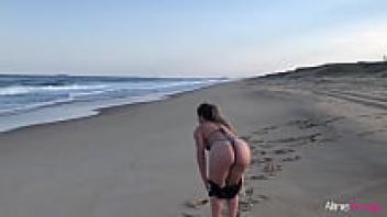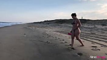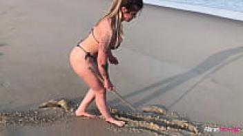 On the beach, a peeping voyeur is in love with a blonde MILF.