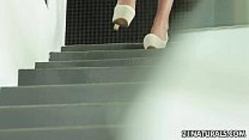 Carmels is an amateur babe who upskirts and voyeur masturbates a brunette in public at home.