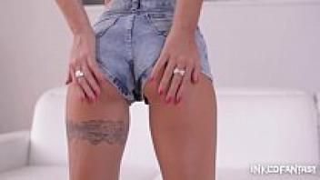 Bombshell Susy Gala Masturbates on a Casting Couch with Tattoos