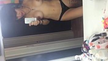 Mesmerizing brunette stepsister pleasures her wet cunt