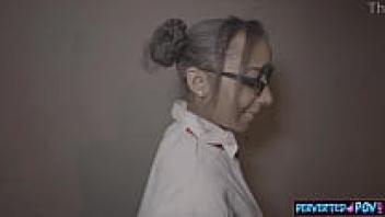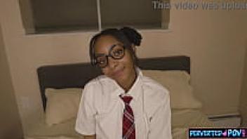 Bambi Black, a lewd teenager, controlled with a large cock.