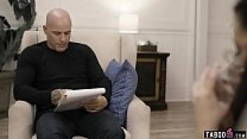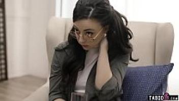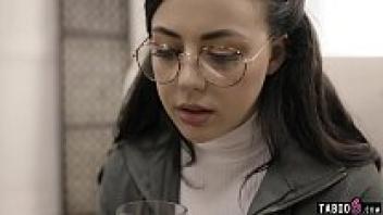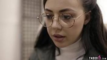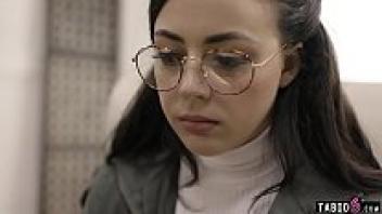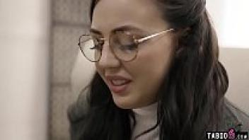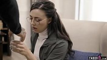 The social worker takes advantage of the nerdy adolescent wearing glasses.