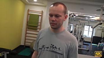 HUNT4K. Hunter is cuckold for money, so he can adore his girlfriend in the deserted gym.