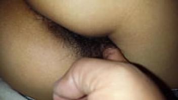 displaying the hairy pussy of the milf wife