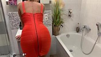 A older stepmother with large tits and a delicious ass slowly undresses as she moves about the room. PAWG upskirt. desire for a fat milf at home. amateur.