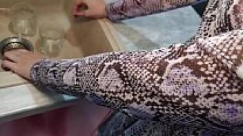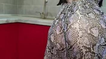 A older stepmother with large tits and a delicious ass slowly undresses as she moves about the room. PAWG upskirt. desire for a fat milf at home. amateur.
