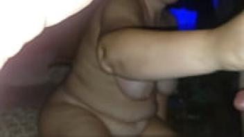 Playing with Dildo's huge, wet pussy, a pregnant milf