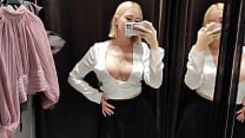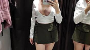 Try-on Haul for a Hidden Camera Fitting Room: No Underwear, Tight Curves, and See-Through Underwear