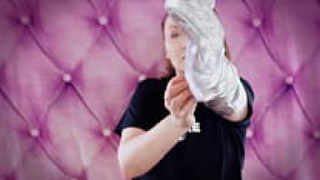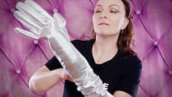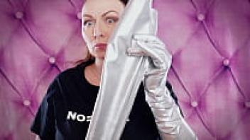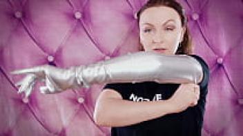 ASMR: Arya Grander's long opera silver sparkly gloves. Free SFW video with a fetish sound.