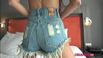 Uncensored Japan cream pie is handed to a short, sweet Thai girl.