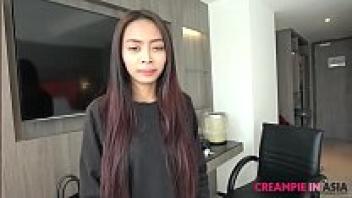 A Japanese guy gives a cumshot to a big-titty Thai chick.