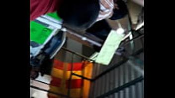 without panties below the skirt. Outside, Voyeur admires the juicy and hairy PAWG while peeking under the garment. amateur fetish.