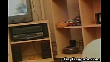 A deepthroat blowjob and a fantastic handjob are performed by a gay gangster.