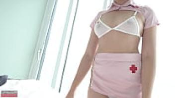 at an unedited JAV, a skinny Japanese nymphomaniac nurse gives a hesitant boy his first love at a hospital.