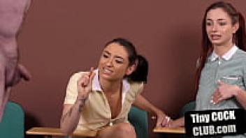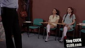 A smallcock teacher sulks in front of the voyeur students in classroom four.