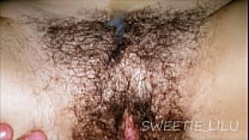 On a hairy pussy, cum. They cummed on the hairy cunt. Gorgeous pussy of my stepmother