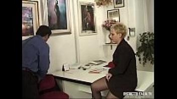 Office Secretary Lucy Gresty Glasses strips out of her french knickers and curly hair